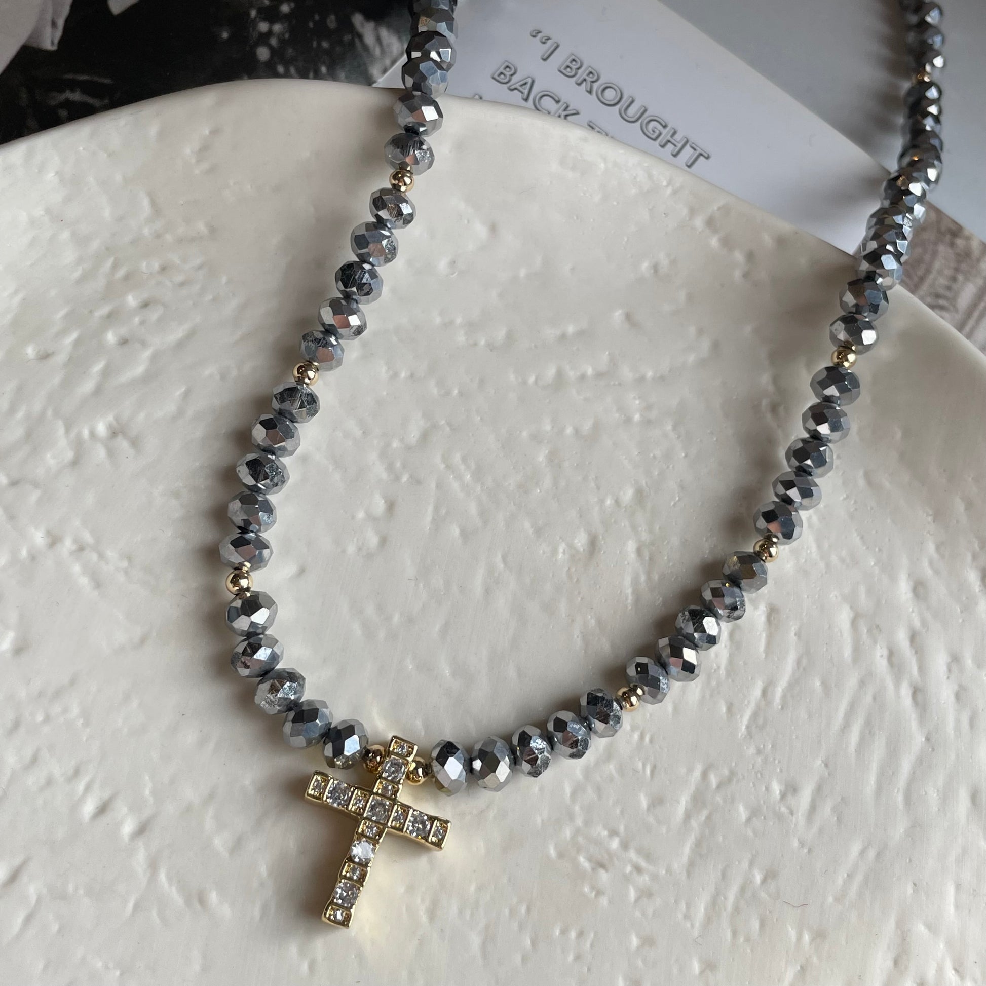 Chocker de cristal con dIker de cruz y Zirconias.