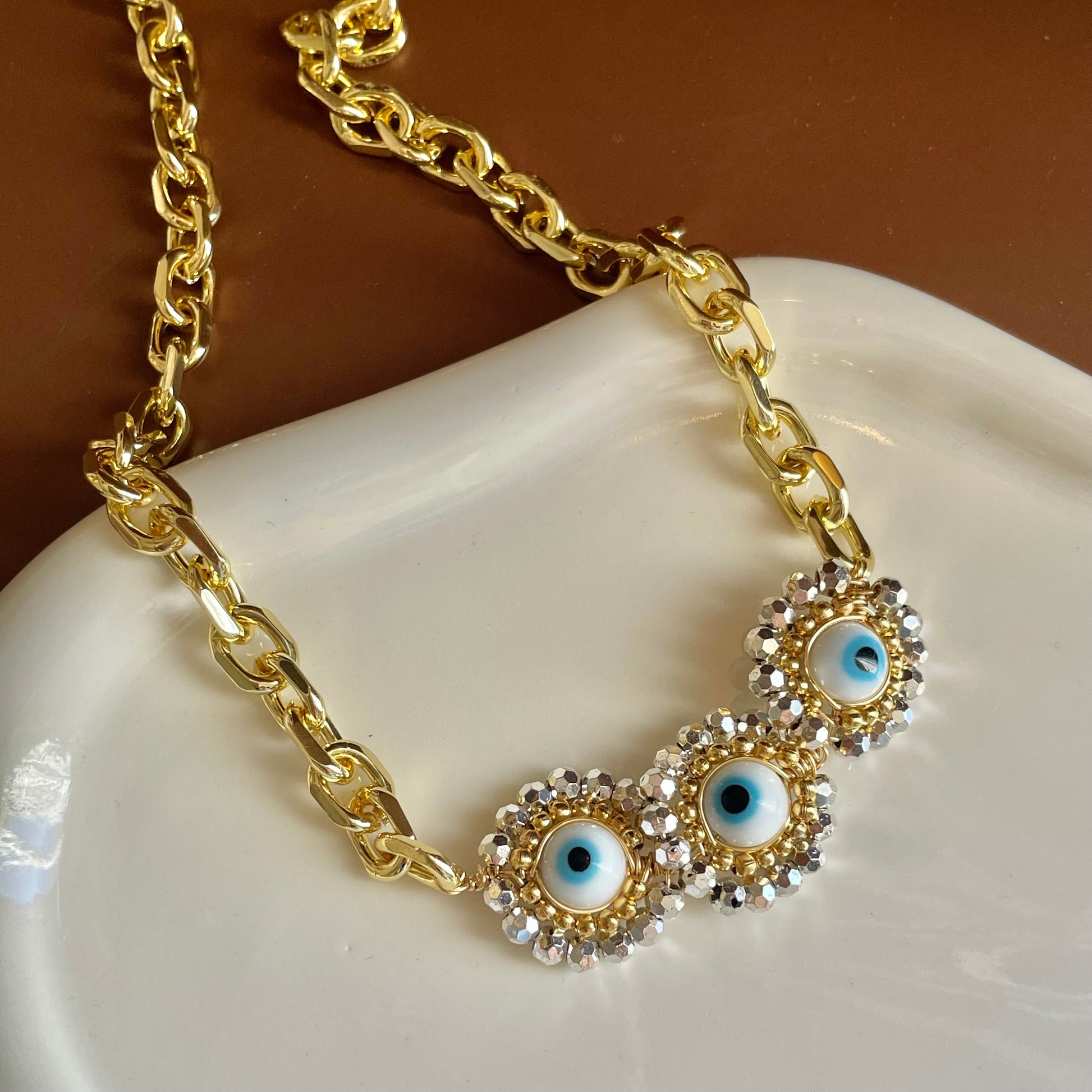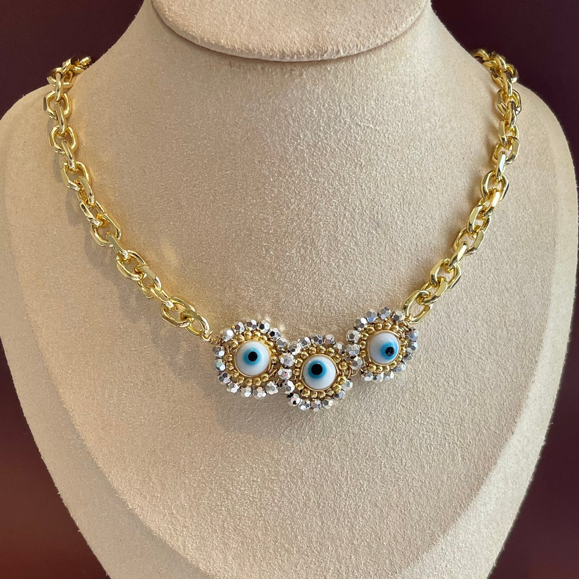 Collar engarzado con ojitos.