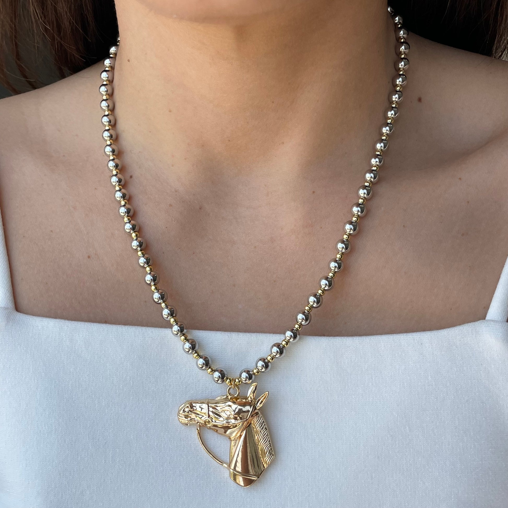 Collar bicolor con dije grande de caballo.