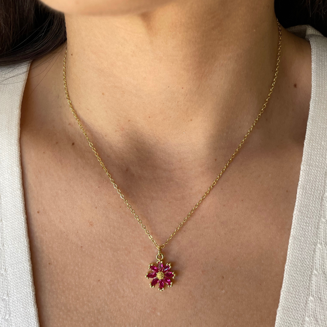 Collar con discreto dije de flor. Chapa de oro.